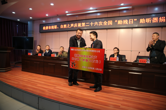 此次松原市殘疾人捐助活動是受到自然之聲公司董事長,總經理特別批準的助殘項目,我公司高度重視此次活動,特委派大區經理雷鵬從北京趕來參加。